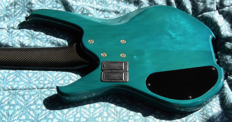 Other than choosing my specs the only customizing I did was ask that the standard walnut center block be replaced with an alder center block with a walnut face to reduce the weight a bit. In my emails with Rob Green I mentioned a number of times I really want the lightest bass he can make. He replied he knows what I mean and I left it at that but this thing's a tank. I can't figure out where the weight comes from but this is heavier than any other bass I own. That was a surprise.