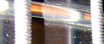 If you look at this photo you can see the vertical grind marks that come from the first step in a fret level and the flat top of the fret itself. When done correctly the next step is to crown the fret until the grind line is very thin and the flat top is rounded. Then a quick polish leaves a perfect round fret. But since it wasn't crowned the polish had to be done much more aggressively to remove the deep grind marks and as a result the fret ends at the side of the fingerboard were rounded over too far. This combined with how close the frets are on the Status 5 strings to the edge of the fingerboard compared to the 4 string models allowed the G string to fall off the fingerboard when played. This was immediately noticed by everyone who played it.
