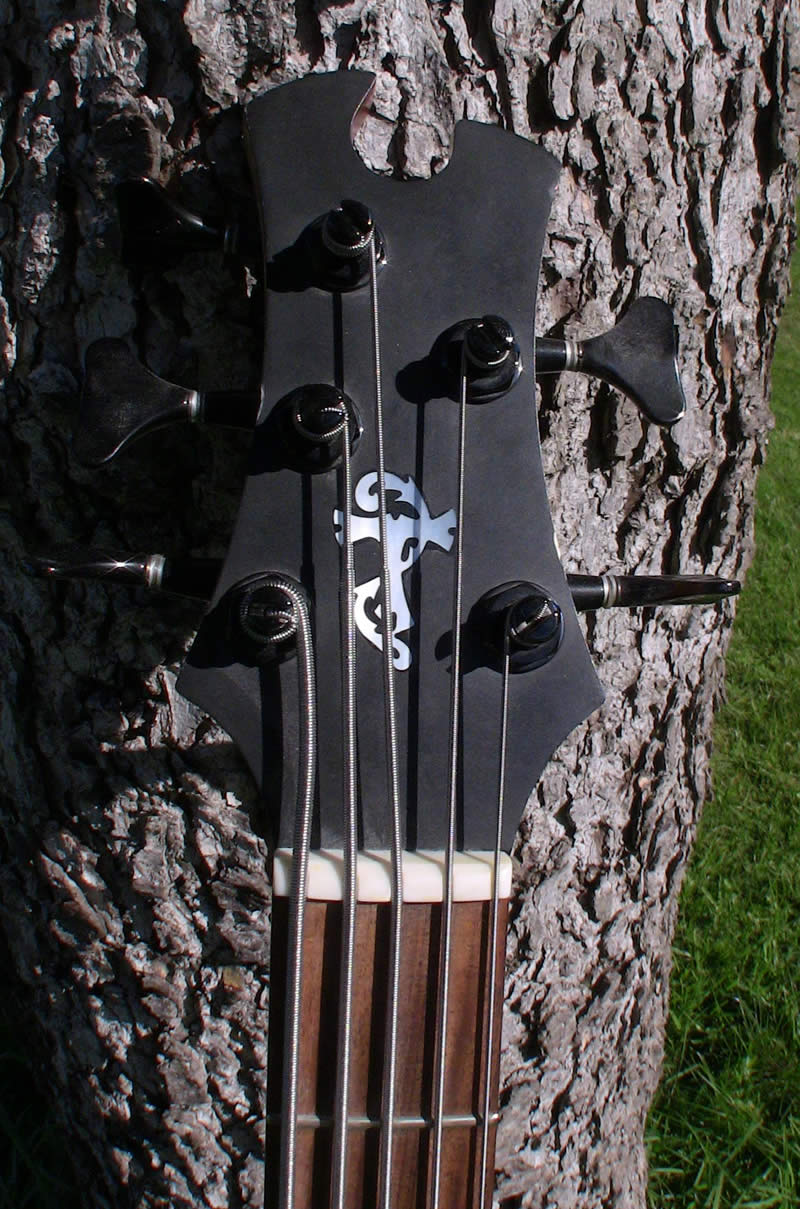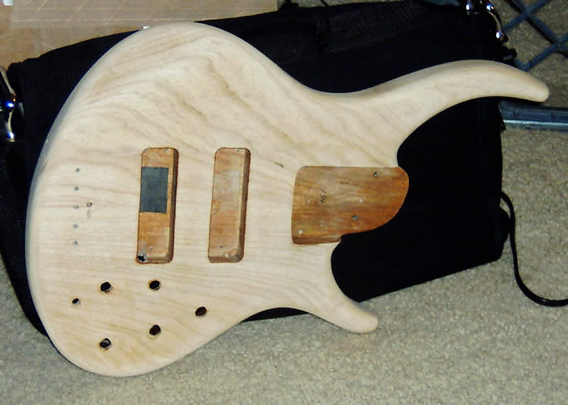 And stained it black with a few applications of aniline dye. Then about 12 to 15 coats of Tru-Oil and a little work and I had a much nicer looking bass.