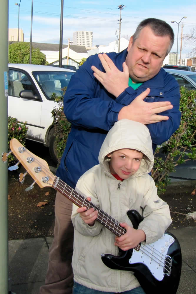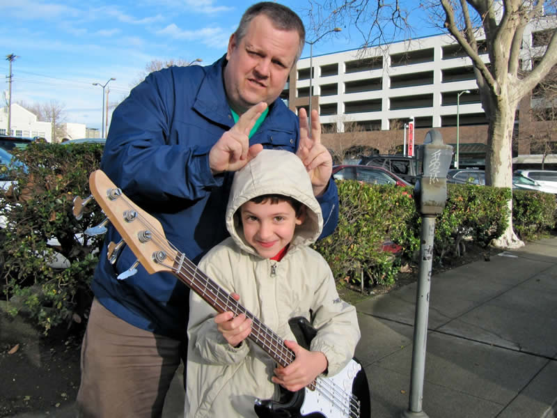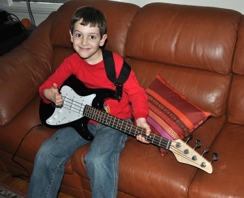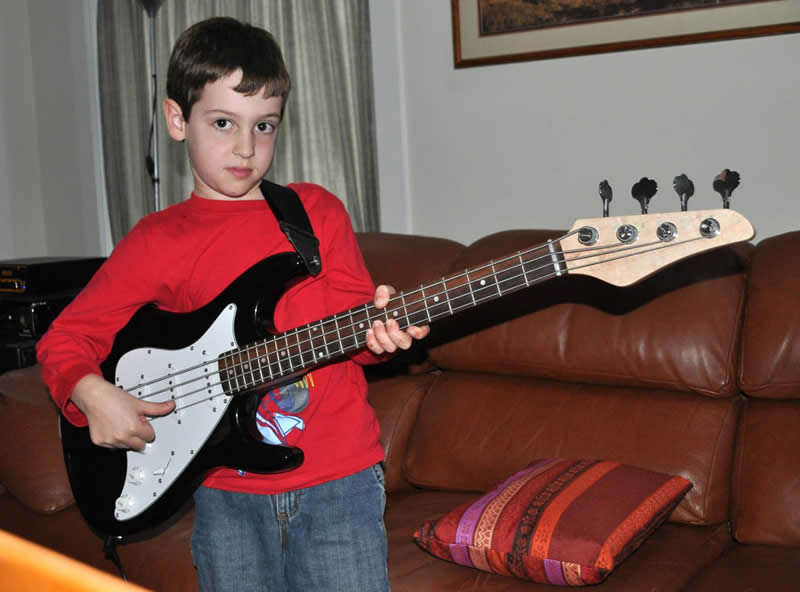 This is Marco, he's 6 years old and wants to play bass. Being 6 most of the basses seem too big for him so I made him a mini bass that fit a little better.