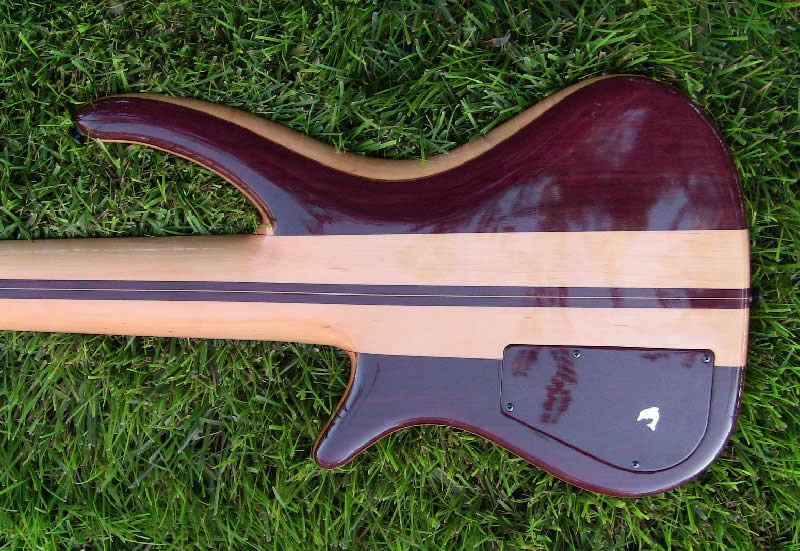 This bass was meant to sound like a Ken Smith bass and with Ken Smith pickups it does. The preamp is a Bartolini NTBT with matching purpleheart knobs. Did I mention the knobs? They have pearl indicator dots.