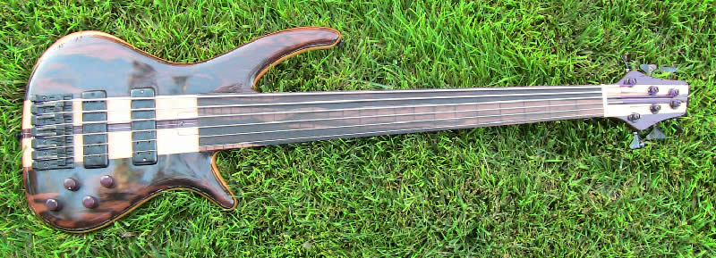 This is Matt's 6 string. It was made just the way he liked it. Except he eventually changed his mind about it being fretted and it was converted to fretless.