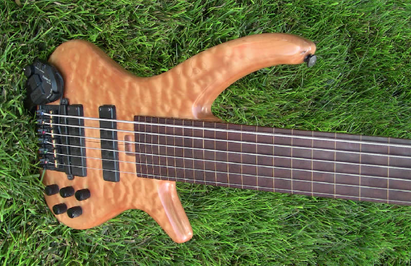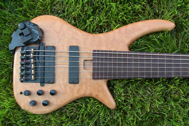Besides the Bartolini pickups this bass has RMC piezo bridge saddles and a Roland GK-3B synth pickup.
